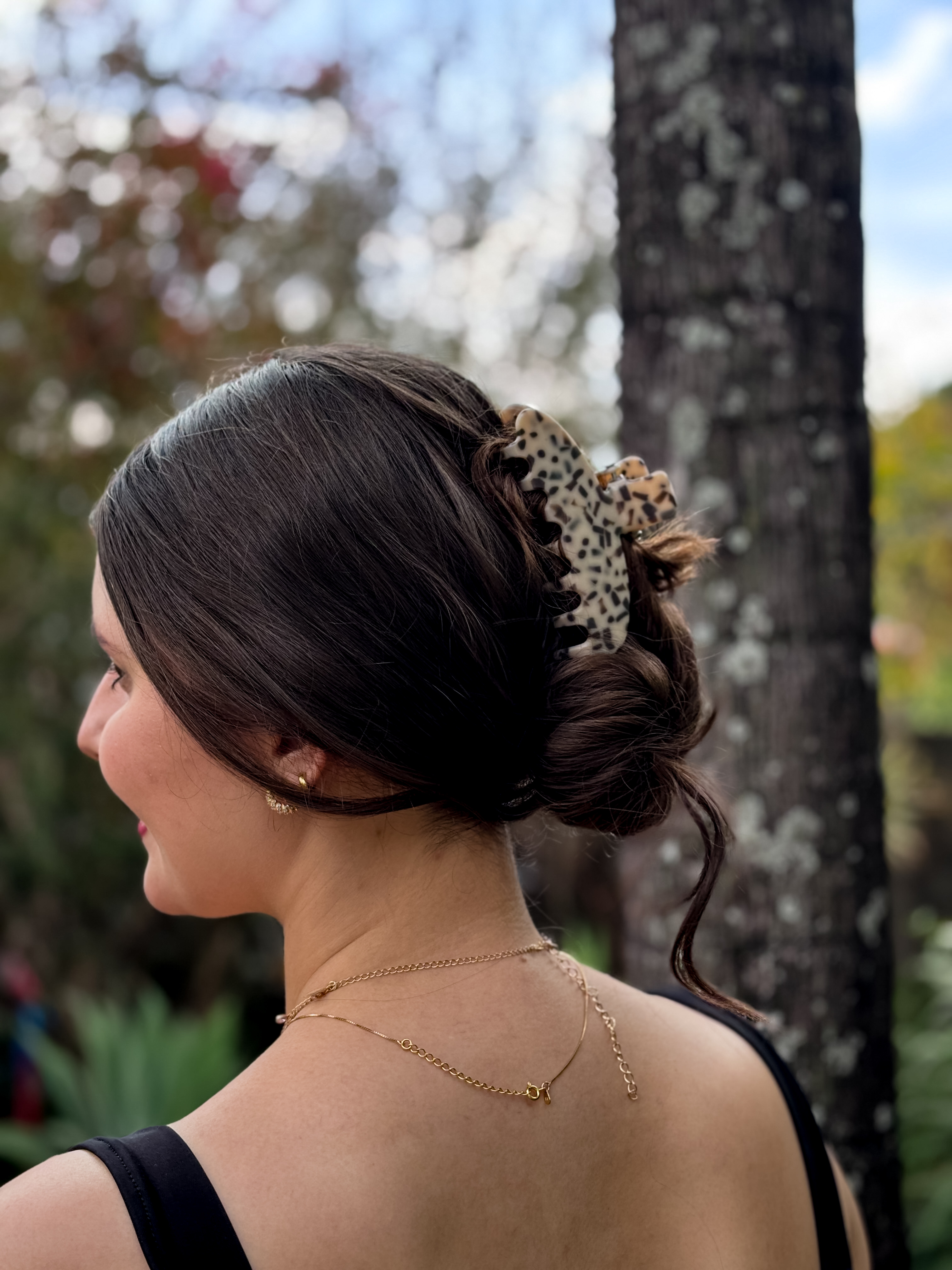 Com medidas de 10 cm de comprimento, 5,5 cm de largura por 4 cm de altura, ela é perfeita para todas as ocasiões. Essa piranha se adapta desde um look despojado até eventos mais formais, adicionando um charme especial ao seu cabelo.