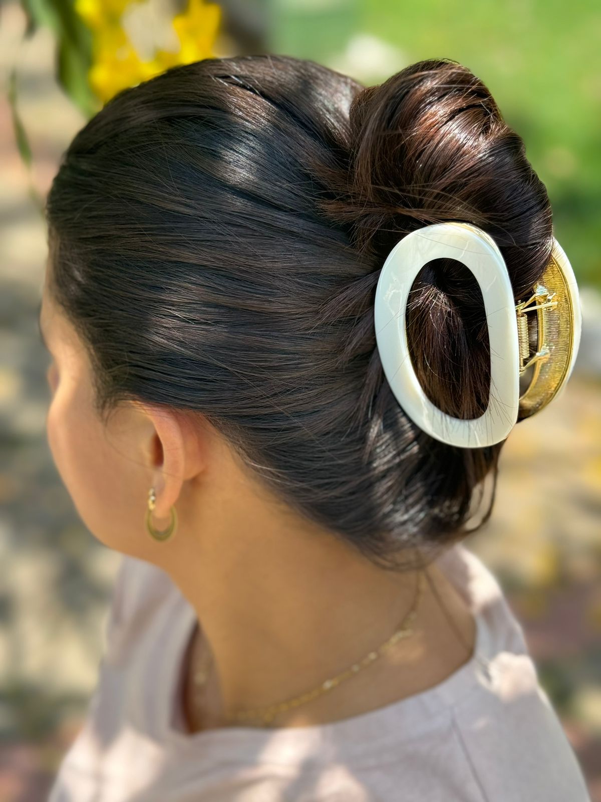 Linda piranha de metal com acabamento em acetato, perfeita para dar aquele charme no seu cabelo! O tamanho grande garante um penteado incrível e prático.