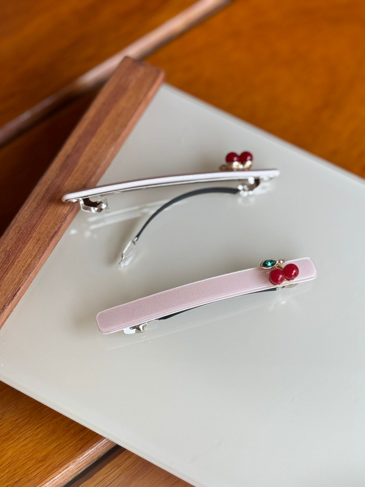 Presilha com Cereja em acetato, vendida por preço individual, corresponde a somente 1 unidade. Este modelo delicado traz um toque de charme e sofisticação ao seu visual.