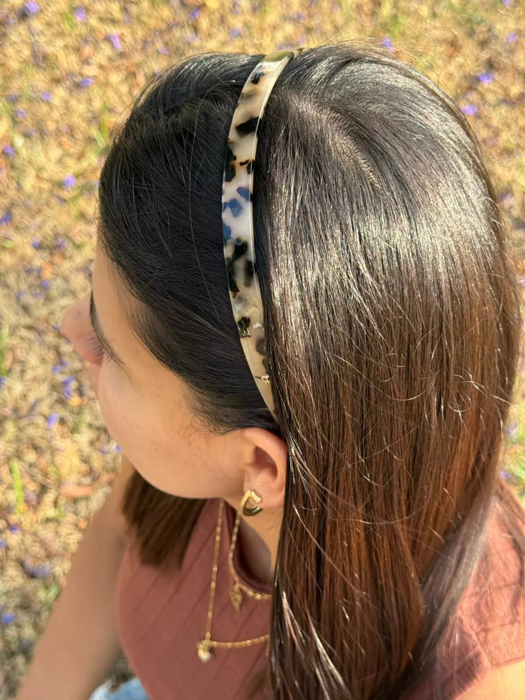 A Tiara de Acetato - Ayla é vendida por preço individual, correspondendo a somente 1 unidade, com largura de 1 cm.